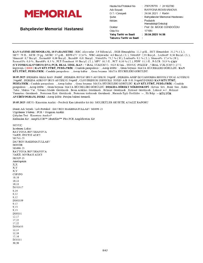 Bir hafta o‘tib javoblarni oldik. Xonada jimlik hukmron edi. ⏳ Tahlillar ko‘rsatdi: kasallik rivojlanmoqda, suyak iligi zarar ko‘rgan.